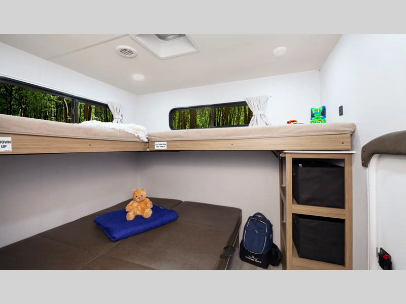You will find a wide range of floorplans available so you should easily find one that fits your needs and lifestyle. Get a good night's rest on the comfortable beds and keep your bellies full with the fully equipped kitchens. The aerodynamic front radius profile helps make towing easier than ever, and the powder coated I-beam frame adds durability.